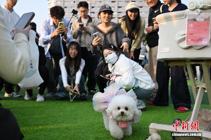 今日以“萌辱偕行,情感齐运”为重心第109届华北(广州)辱物嘉韶华正在位于广州市银河区的华北农业年夜教举办。图为辱物狗吸收公众。中新社记者 旧楚白 摄
